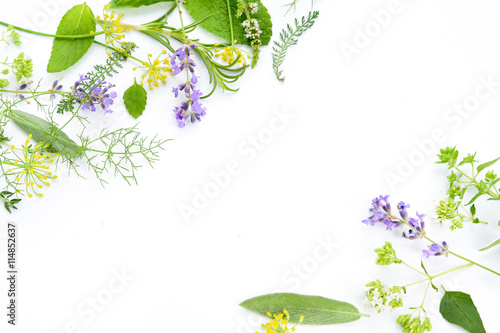© Botamochy, Obraz premium variety of fresh herbs on white background