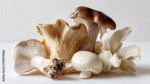 Fototapeta premium Variety of fresh mushrooms displaying their unique textures and colors