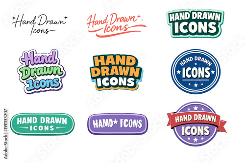 Fototapeta premium Variety of hand drawn icons in colorful styles