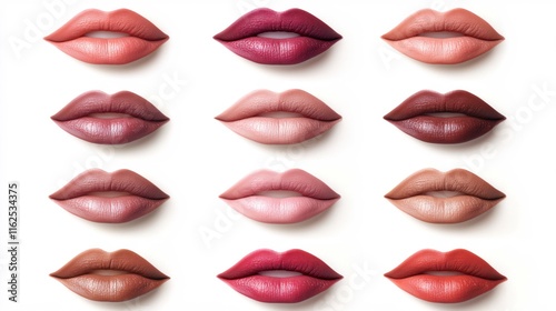 © Sarinya, Obraz premium Variety of Lip Colors Displayed in a Creative Arrangement on a Light Background