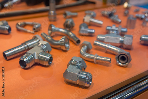 Fototapeta premium Variety of metal fittings for water on the counter. Industry