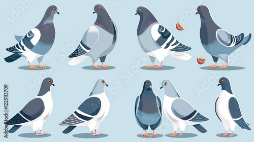 © Thomas, Obraz premium Variety of Pigeon Poses: Bird Pecking Seeds Vector