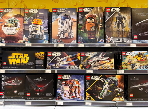 © Roman Tiraspolsky, Naklejka premium Variety of Star Wars Lego sets on sale at a Lego store.