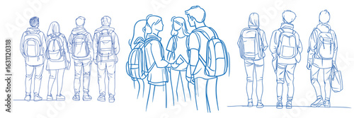 © Aisyah Faiha, Fototapeta premium variety of students with backpacks in line style for education and school design