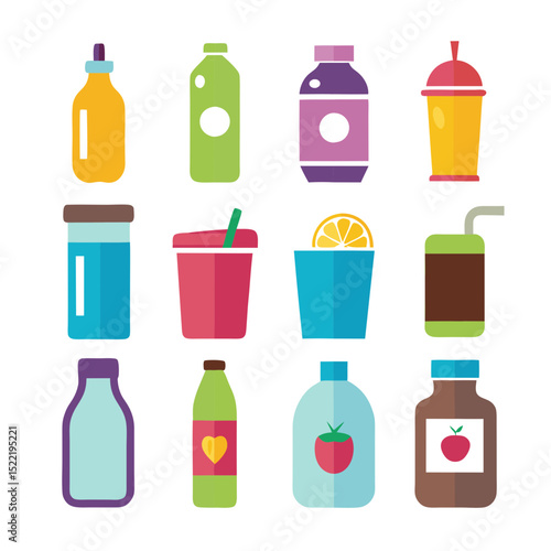 Fototapeta premium Variety of stylized juice and beverage bottles flat design