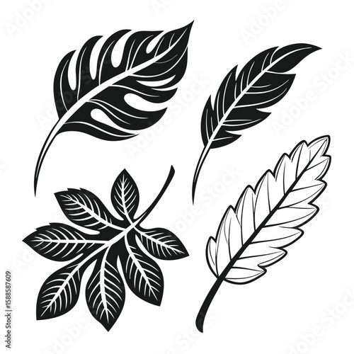 © scbranded, Fototapeta premium Variety tropical leaf illustrations