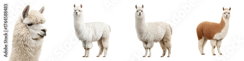 Fototapeta premium Various Alpacas Poses Isolated on White Background