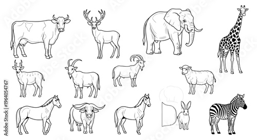 Naklejka premium Various animals in a line drawing.