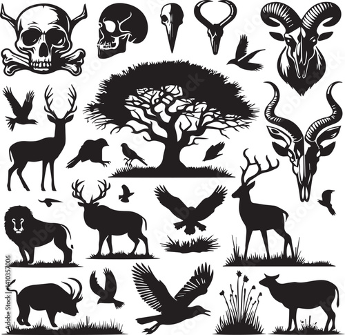 © TechNova Graphics, Naklejka premium Various animals vector silhouettes isolated on white background
