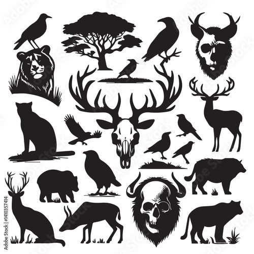 © TechNova Graphics, Naklejka premium Various animals vector silhouettes isolated on white background
