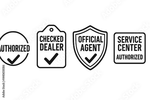 © icon_art, Fototapeta premium Various authorized service and dealer badges displayed for customer assurance and trust in quality