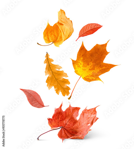 © Ирина Гутыряк, Fototapeta premium various autumn leaves on white isolated background
