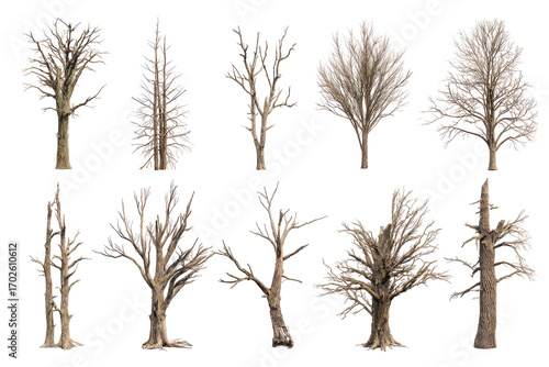 Fototapeta premium Various barren trees in a grid