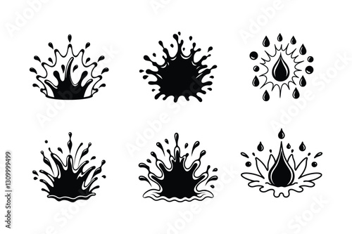 Obraz premium Various Black Ink Splash and Drop Vector Graphic Designs