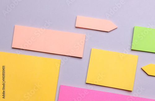 Fototapeta premium Various blank paper multicolored stickers. Sticky note collection on gray background