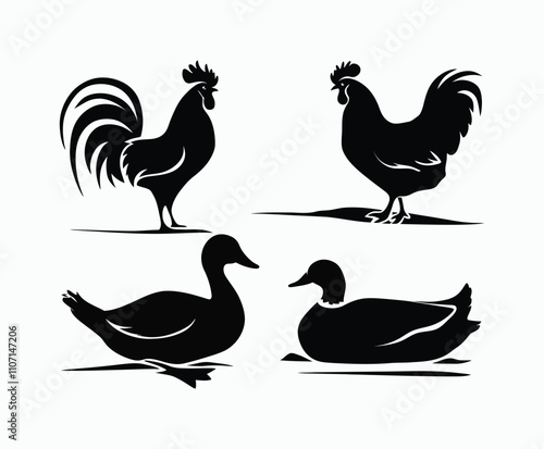 Obraz premium Various Bold Poultry Silhouettes Vector Template
