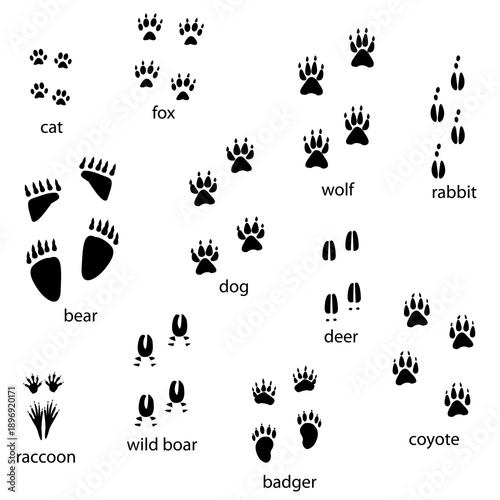 Fototapeta premium Various common animal paw print silhouettes.eps