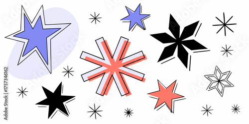 © shoab, Fototapeta premium various crayon drawn asterisks and star shapes