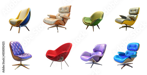 Fototapeta premium Various 3d designer chairs collection with different colors and styles,...