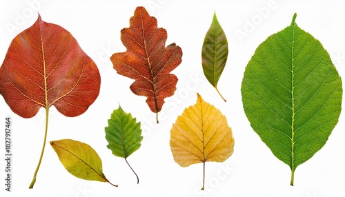 © Willard, Fototapeta premium Various Deciduous Leaves Isolated On Transparent Or White Background Generative Ai