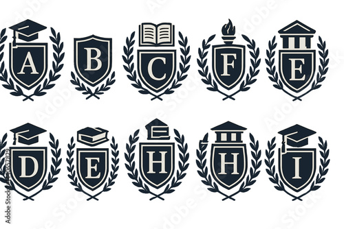 Obraz premium Various educational emblems featuring books, graduation caps, and symbolic...