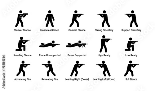 Fototapeta premium Various firearm stances illustrated with stick figures