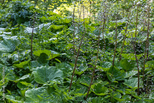 © Vlad, Fototapeta premium Various green forest alpine plants in May evening