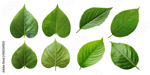 Fototapeta premium Various Green Leaves on Transparent Background