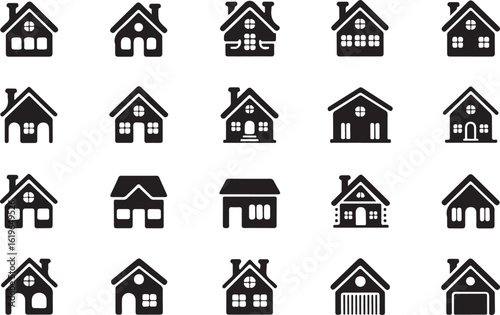 © RAHMAT, Fototapeta premium Various house designs with windows and chimneys home