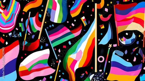 Obraz premium Various LGBTQIA pride flags waving in the wind, celebrating diversity and...
