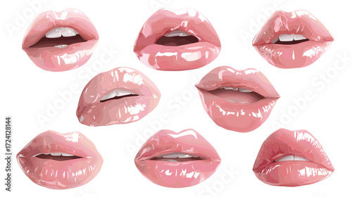 © AI PIC, Obraz premium Various lip illustrations in pink shades