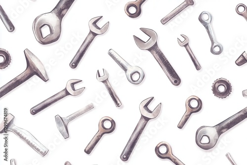 © AHNH3, Naklejka premium Various Metal Tools on a White Background for Home Improvement Projects