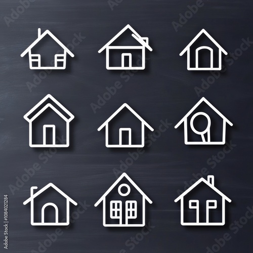 © Bipul Kumar, Fototapeta premium various minimalistic house icons on a dark background