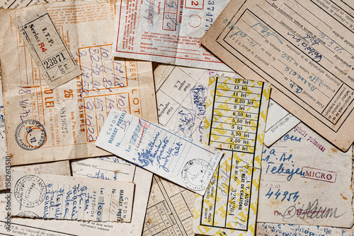 © Roberto Sorin, Obraz premium various old documents, tickets, postcards, lottery tickets, pension vouchers