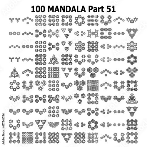 © haris, Obraz premium Various Pattern collections 100 Mandala pattern set Doodles freehand