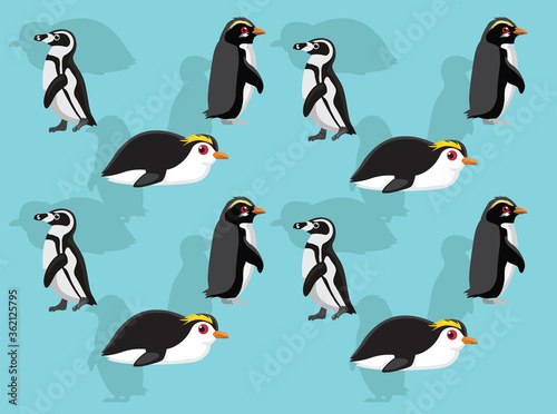 Obraz premium Various Penguins Royal Madagascar Fiorland Vector Seamless Background...