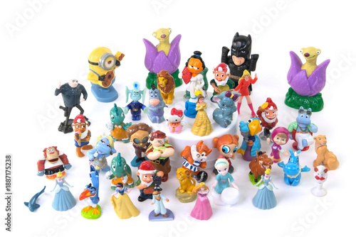 © Lena Lir, Naklejka premium Various small toys including Kinder Surprise on white