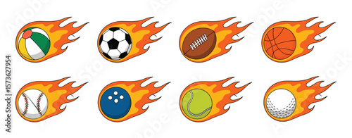 Naklejka premium Various Sport Balls with Flames