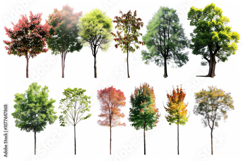 © Dewi, Fototapeta premium Various trees with leaves isolated on white version 3
