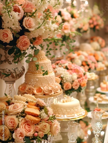 © kaleidoscope, Naklejka premium Various types of cakes showcased on a mirrored table