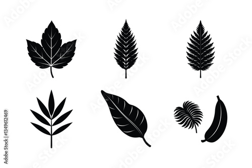 © Helal, Fototapeta premium various types of leaves silhouette vector illustrations