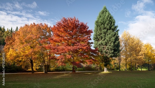 © Priscilla, Fototapeta premium Various Types Of Trees Illustrating Seasonal Colors And Textures In A Natural Setting