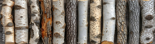 © Nadiyah, Fototapeta premium Various types of wood logs with bark.