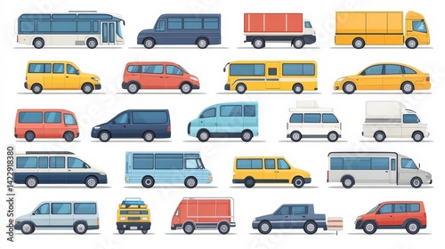 © In, Naklejka premium Various Vehicles on Toll Road in Pastel Color Background