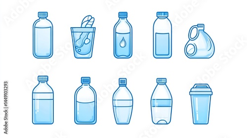 © Mufarokah, Fototapeta premium Various water bottles and cups