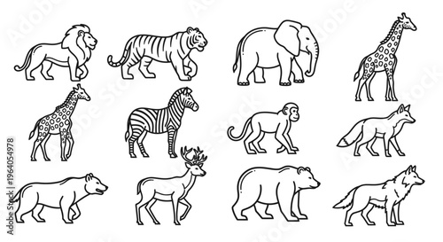 Naklejka premium Various Wild Animals Line Drawings 2.