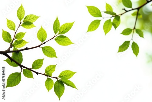 © yuwaree, Fototapeta premium Varying branches with leaves isolated on white background, branches, closeup