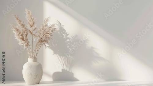 © InfiniteStudio, Naklejka premium Vase with pampas grass against a light wall.
