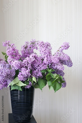 Fototapeta premium Vase with spring violet lilac flowers