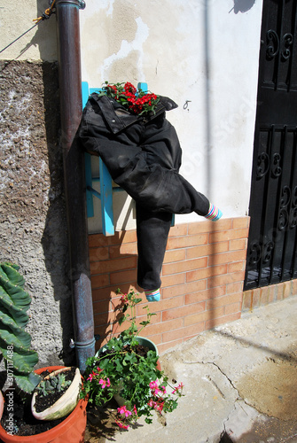 © neuartelena, Fototapeta premium Vasi creativi con fiori in antico borgo abruzzese, Italia